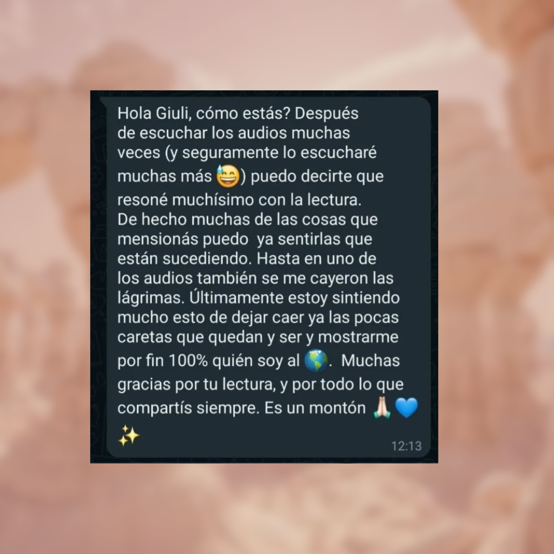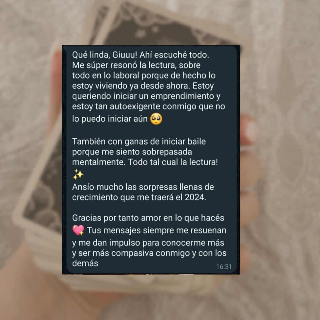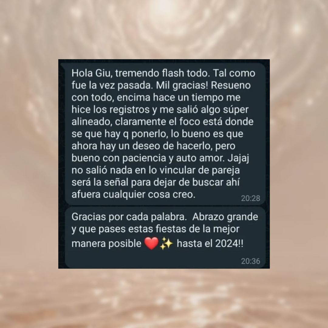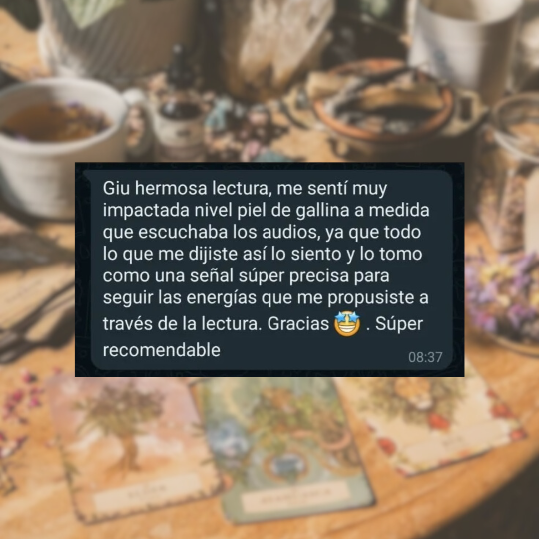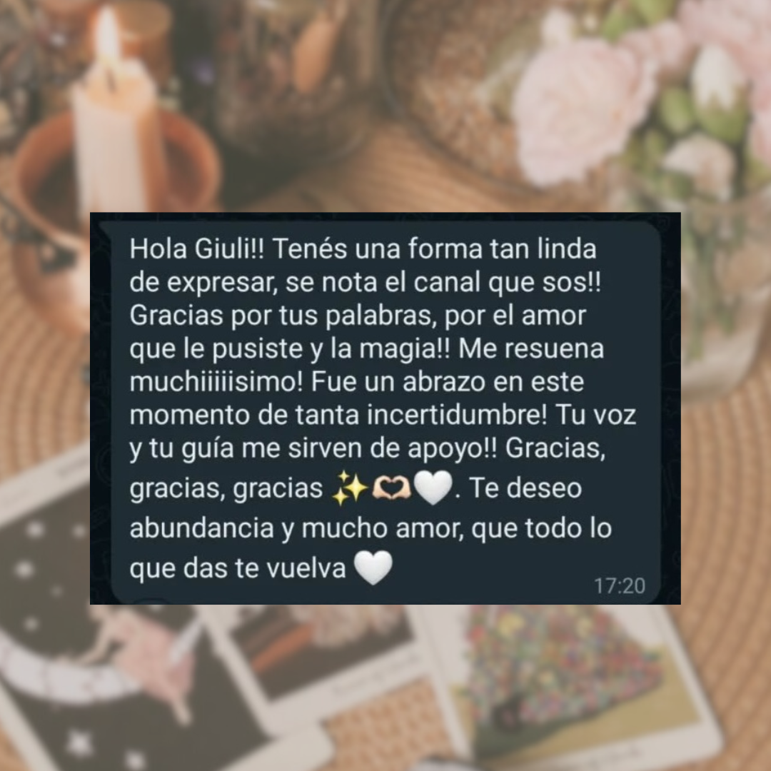 Recibirás tu lectura (+ 20 minutos de información) via audios de Whastapp, junto con una foto de tu carta personal para el 2026
